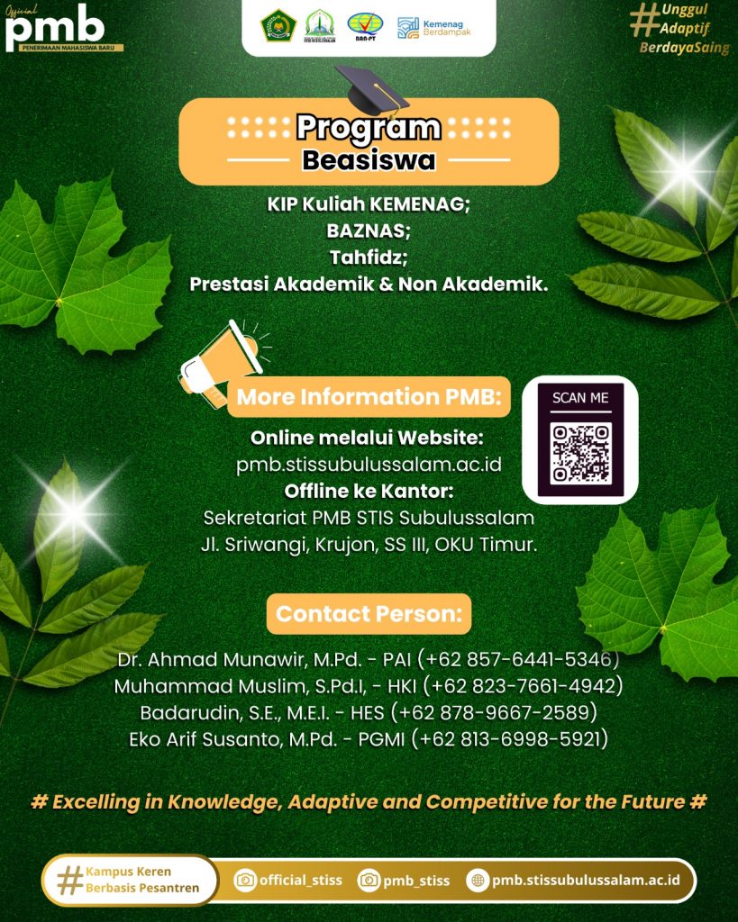 STIS Subulussalam memberikan kesempatan kepada mahasiswa/i baru Tahun Akademik 2026/2027 untuk mengajukan salah satu dari beberapa Program Beasiswa, di antaranya: