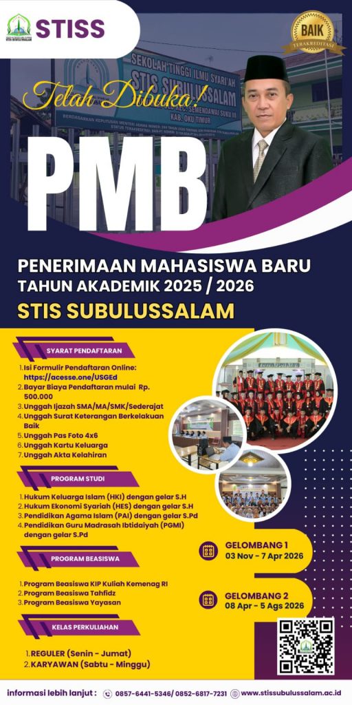 STIS Subulussalam Tahun Akademik 2026/2027 ini membuka 2 (dua) jurusan dan 4 (empat) program studi, sebagai berikut: